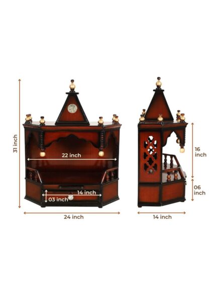 Set content: 1 Pooja TempleColor: BrownMaterial: WoodMounting type: Free standingDelivery condition: Pre assembled