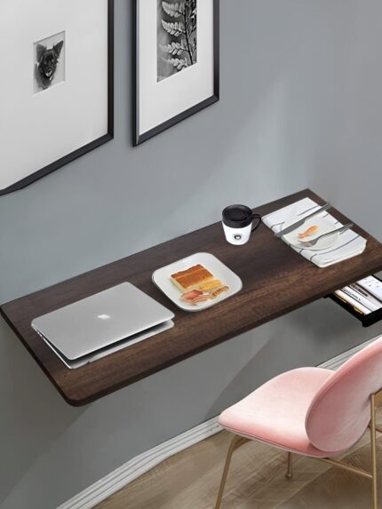 Set content: Study TableColor: BrownPattern: PrintedMaterial: Wood Features:DurableWater-ResistantEasy-to-install brackets that lock at 90 degrees for stability and convenience