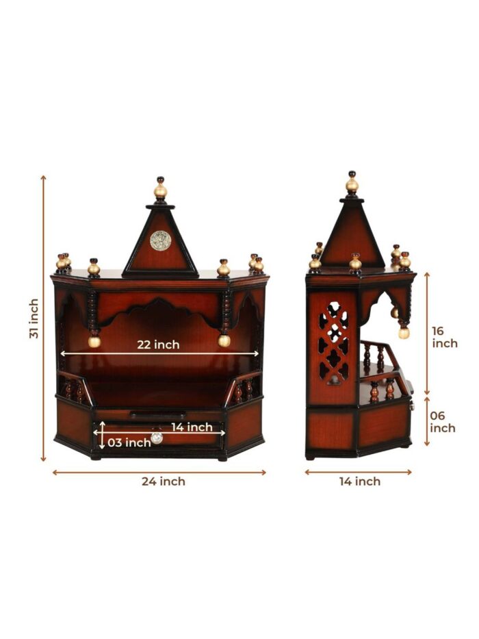 Set content: 1 Pooja TempleColor: Brown and gold-tonedMaterial: WoodMounting type: Free standingDelivery condition: Pre assembled