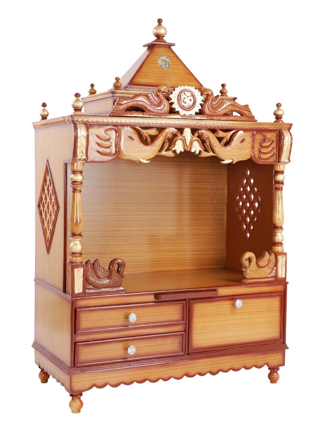 Set content: 1 Pooja TempleColor: Brown and gold-tonedMaterial: WoodMounting type: Free standingDelivery condition: Pre assembled