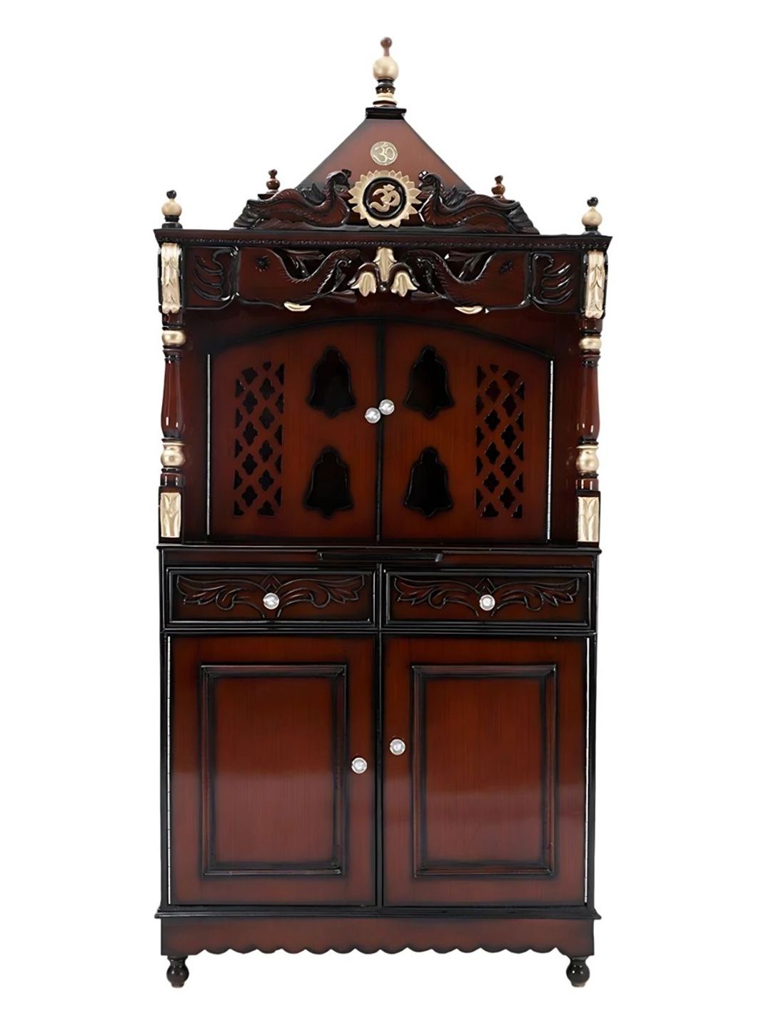 Set content: 1 Pooja TempleColor: Brown and gold-tonedMaterial: WoodMounting type: Free standingDelivery condition: Pre assembled
