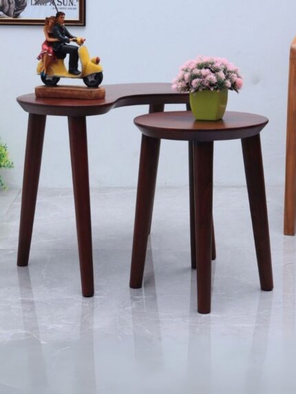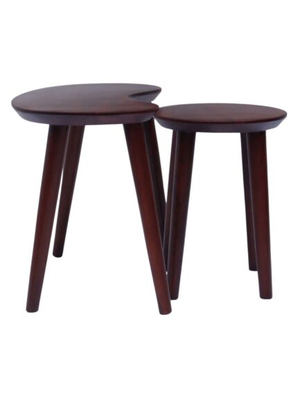 Set content: 2 Coffee tableColor: BrownPattern: SolidMaterial: WoodShape : Round and abstractDelivery Condition : Pre-AssembledFinish : Melamine