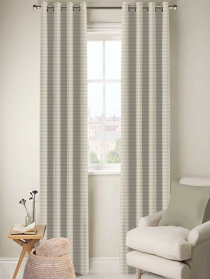 Product Name: Bartow – Smoke Striped Eyelet Curtain Design Style: Stripes And Checks Color: Grey Size: 135 Cm X 160